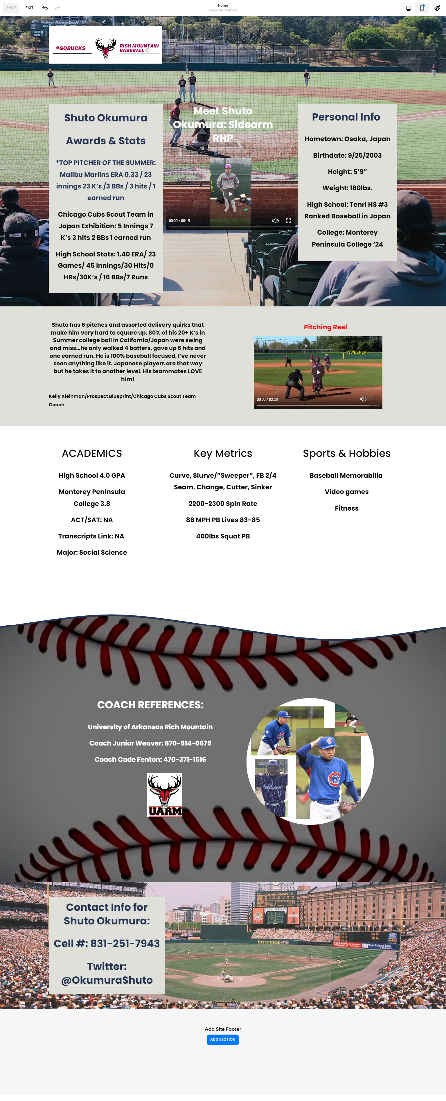 Personal player websites that spotlight each individual player with highlight and technique video, links to each player’s HitTrax and Rapsodo data and vid files, coach contacts, school transcripts, referrals and more (optional)